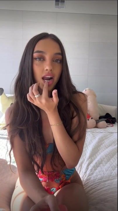 Hiitssenya Naughty Petite Girl Deeply Sucking a Thick Dildo on Bed Video