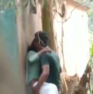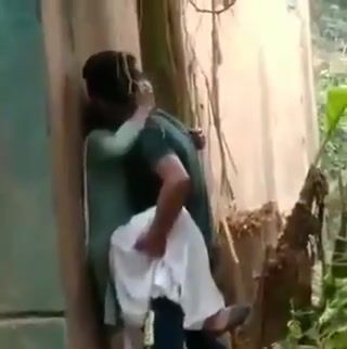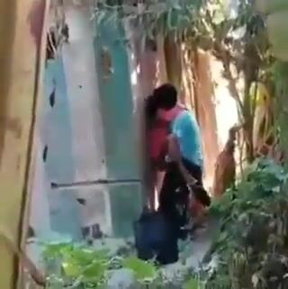 Secretly recorded lovers fucking standing behind the house Indian Video