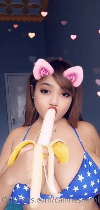 CallMeSherni Horny Babe With Big Tits Teasing Around With a Banana Onlyfans Video