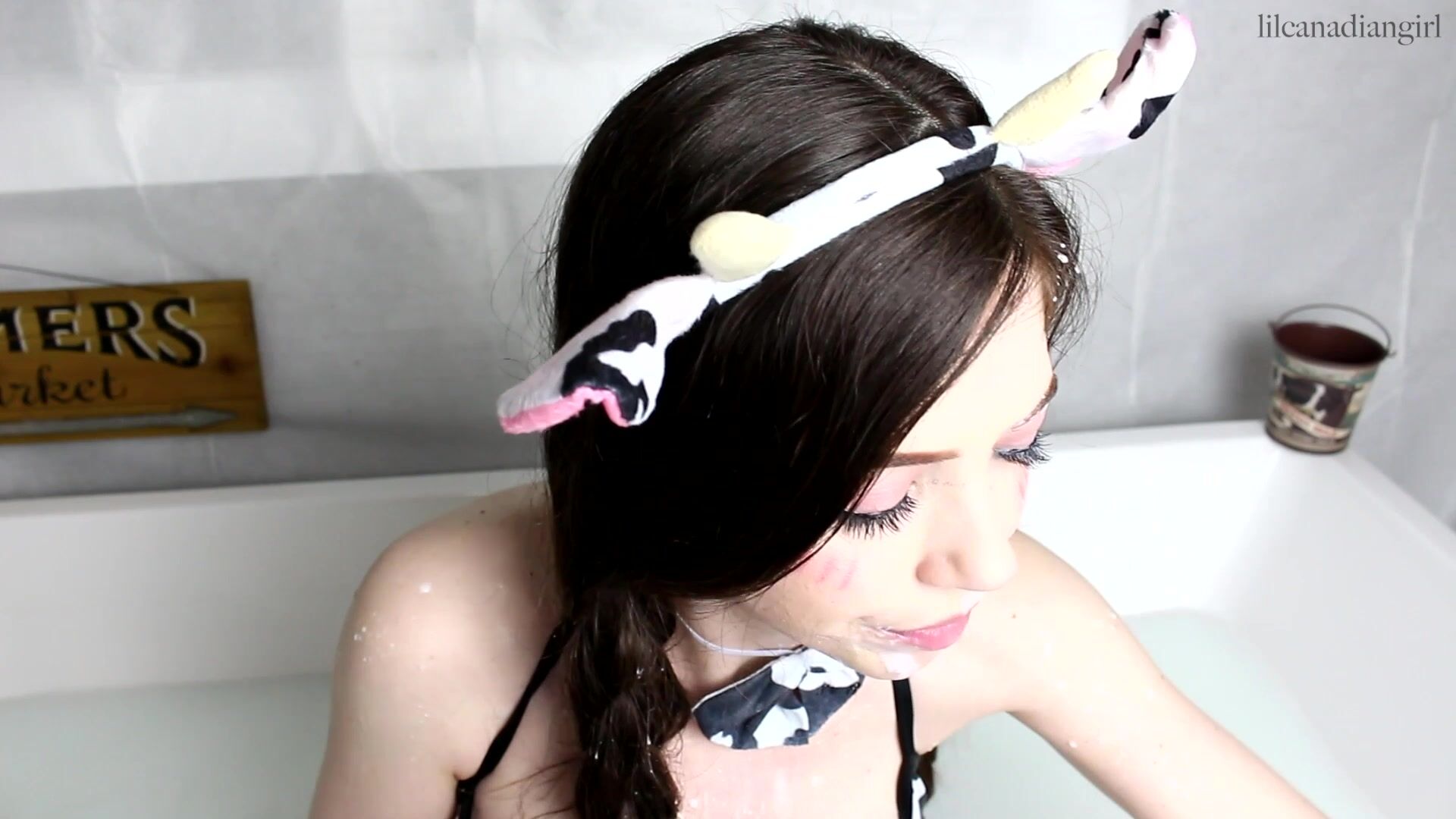 Lilcanadiangirl Bathing in Milk and Sucking Dildo
