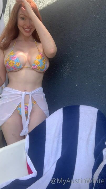 Austin White Busty Redhead Flashing Her Tits While In Bikini Onlyfans Video