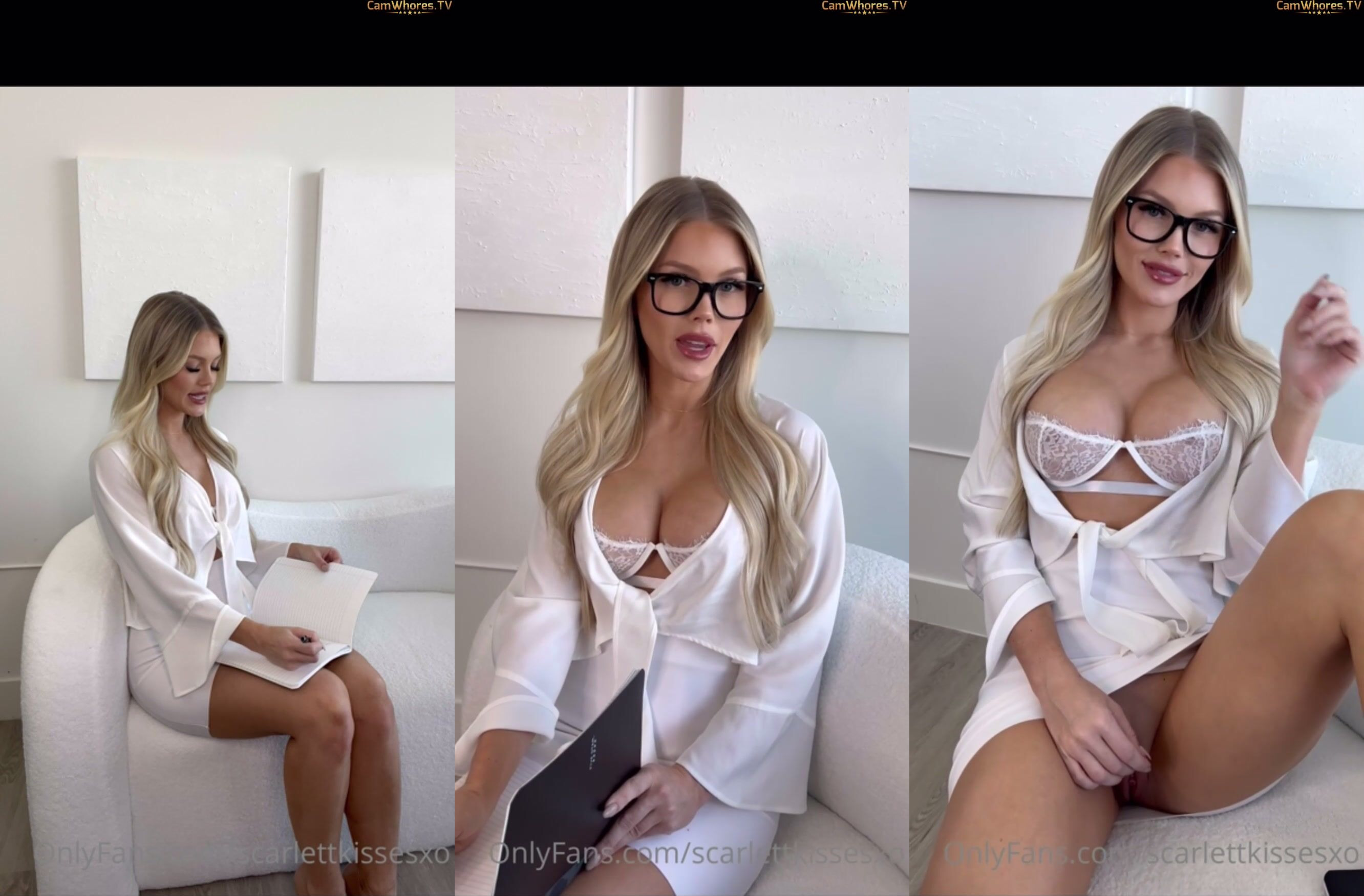 Scarlettkissesxo Teases in White Lingerie and Glasses OnlyFans Video