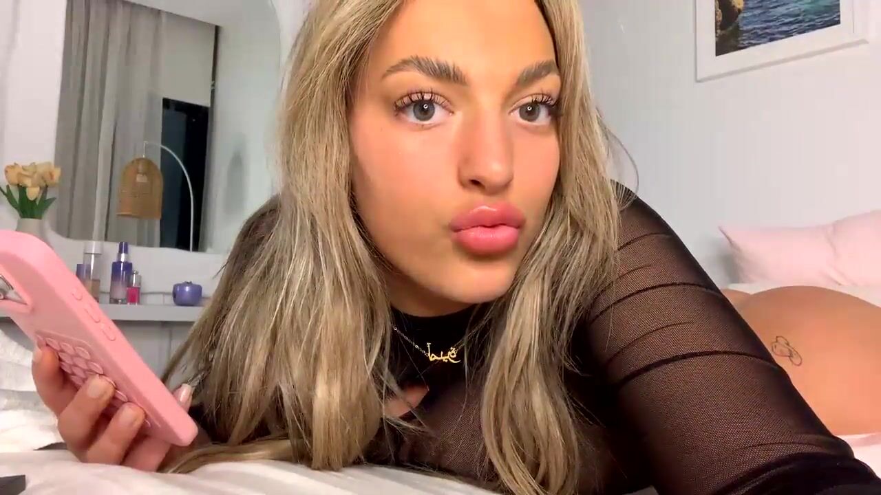Blonde Petite Cutie Alanna teasing in a see-through outfit while relaxing in her bedroom in this seductive video.