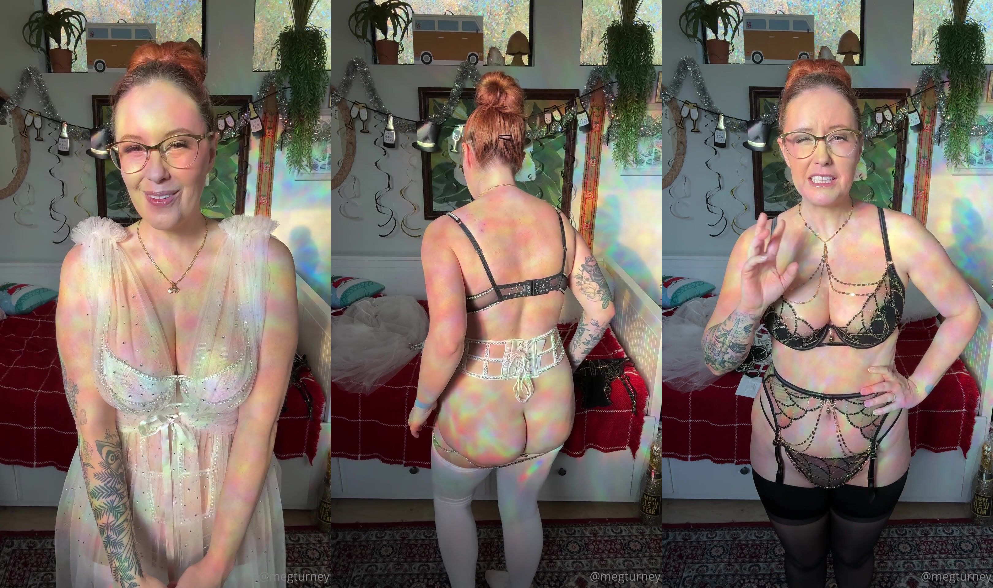 Meg Turney Curvy Goddess Teasing In Black Lingerie In New Year’s Eve Try-on Video