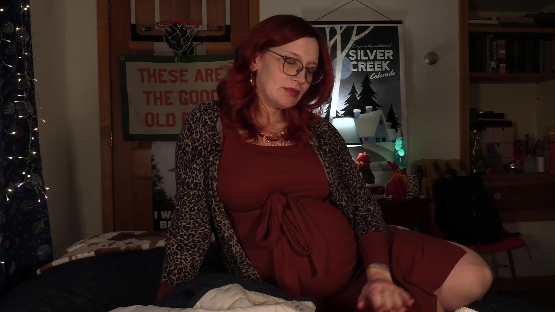 Bettie Bondage Pregnant Curvy Goddess Rides Step Son's Cock in Cozy Bedroom Video.