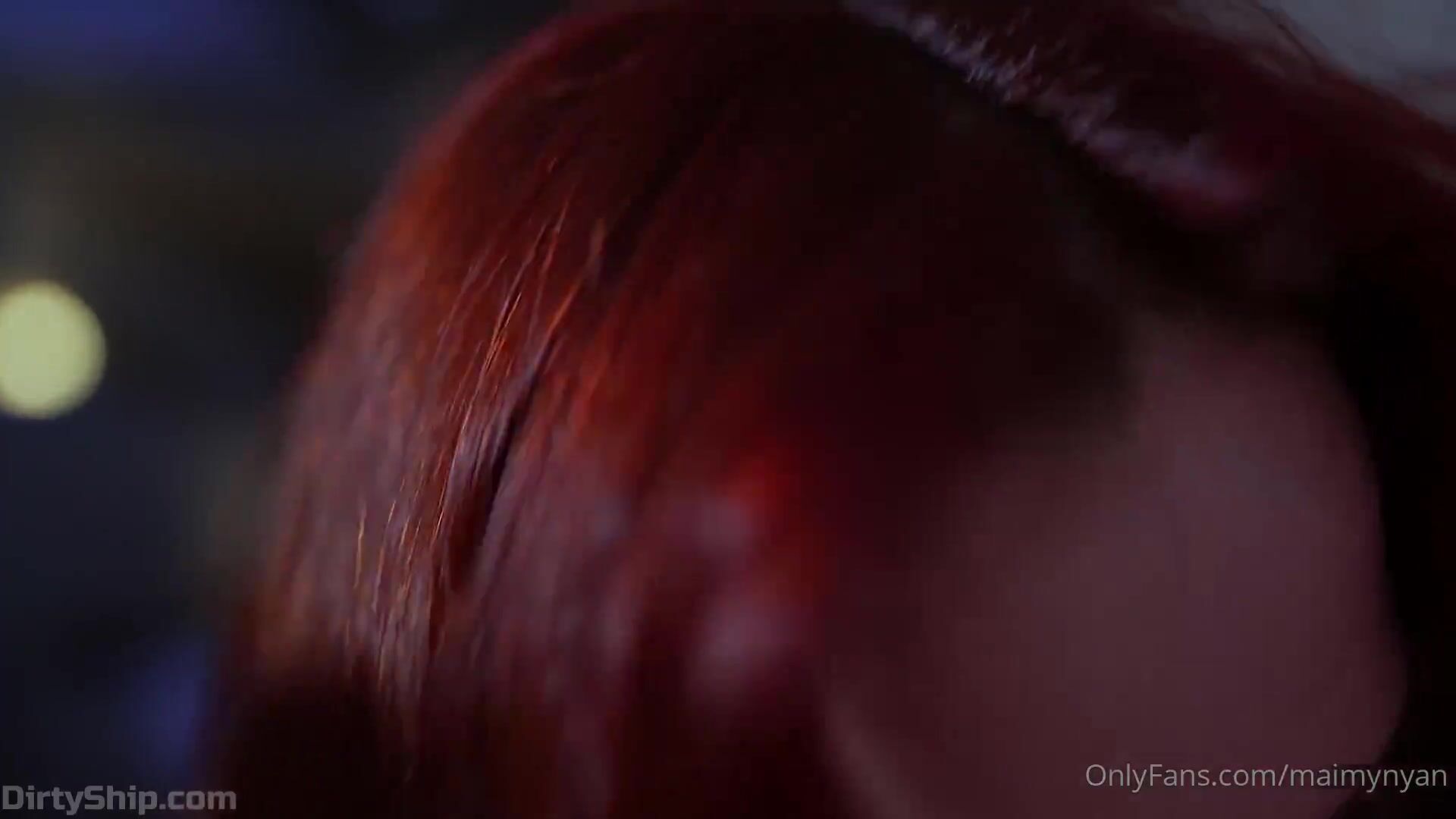 Curvy redhead Maimy ASMR strips down to lingerie in this moody ASMR video, perfect for a rainy day tease.