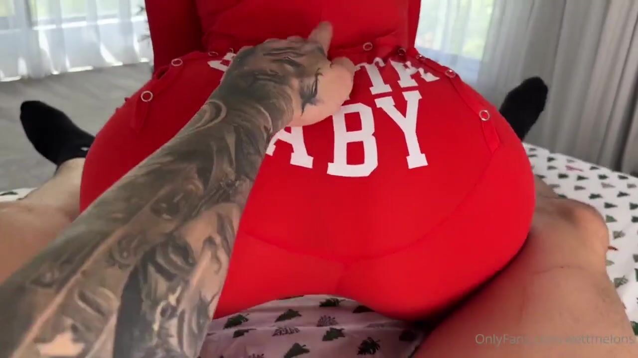 Curvy Goddess WettMelons rides hard cock in a festive Christmas POV video, showing off her big tits and thick thighs while moaning in pleasure.