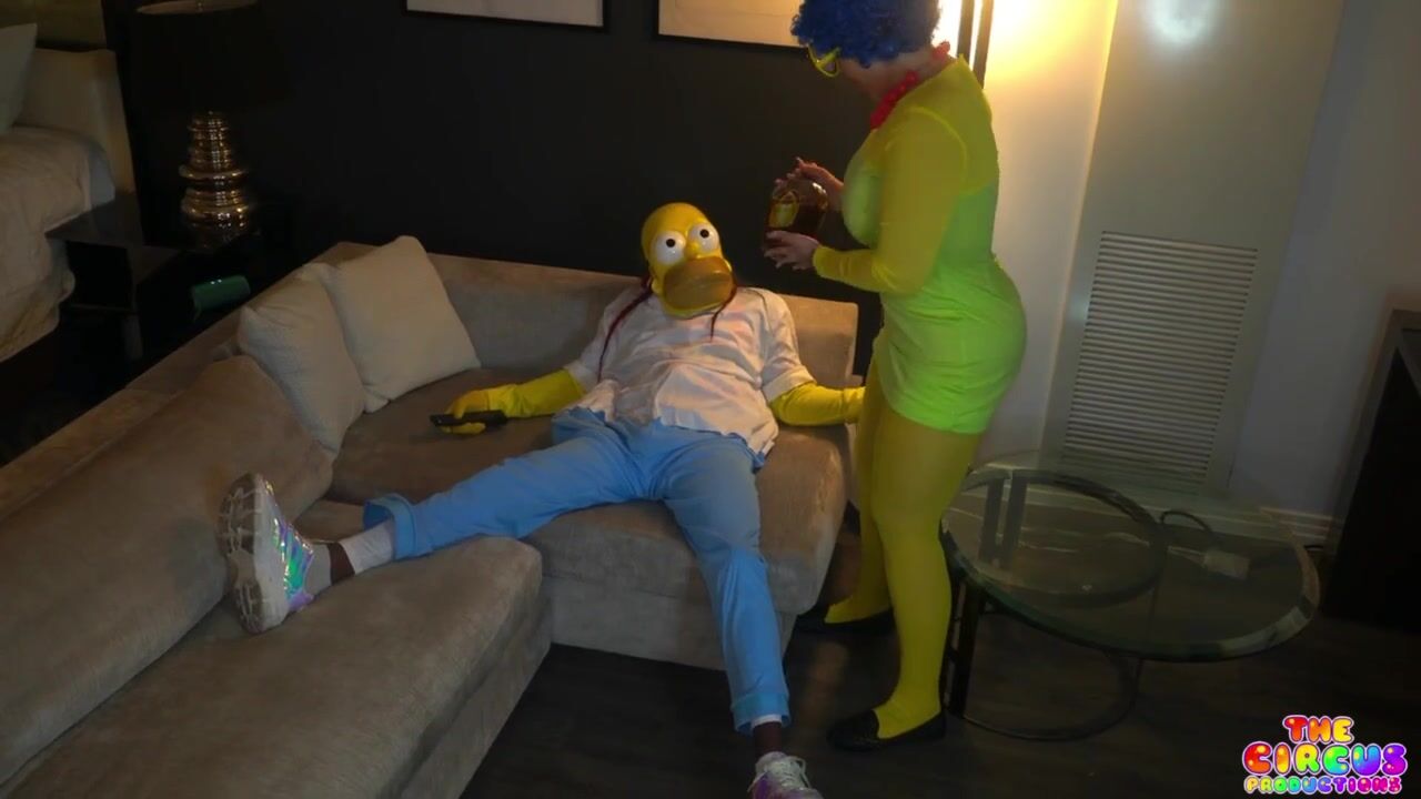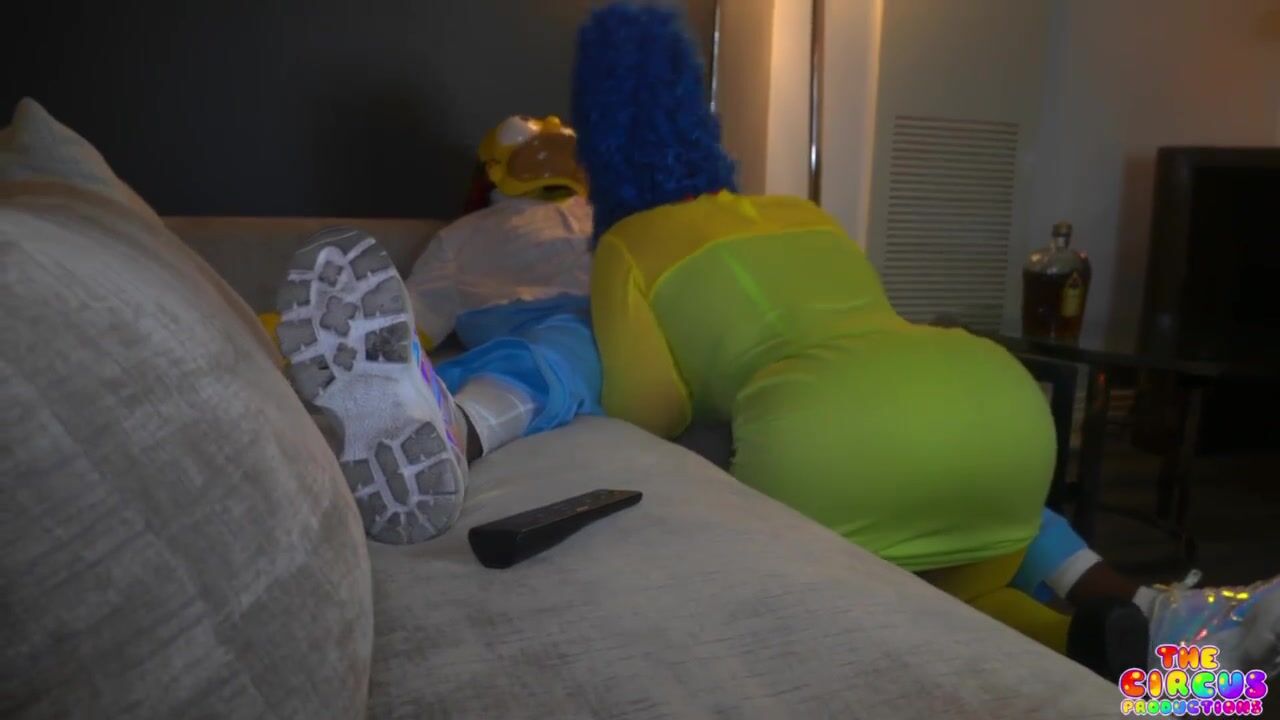 MARGEEEEE goes down on Gibby Simpson in this cosplay blowjob video with full costume fun right on the couch.