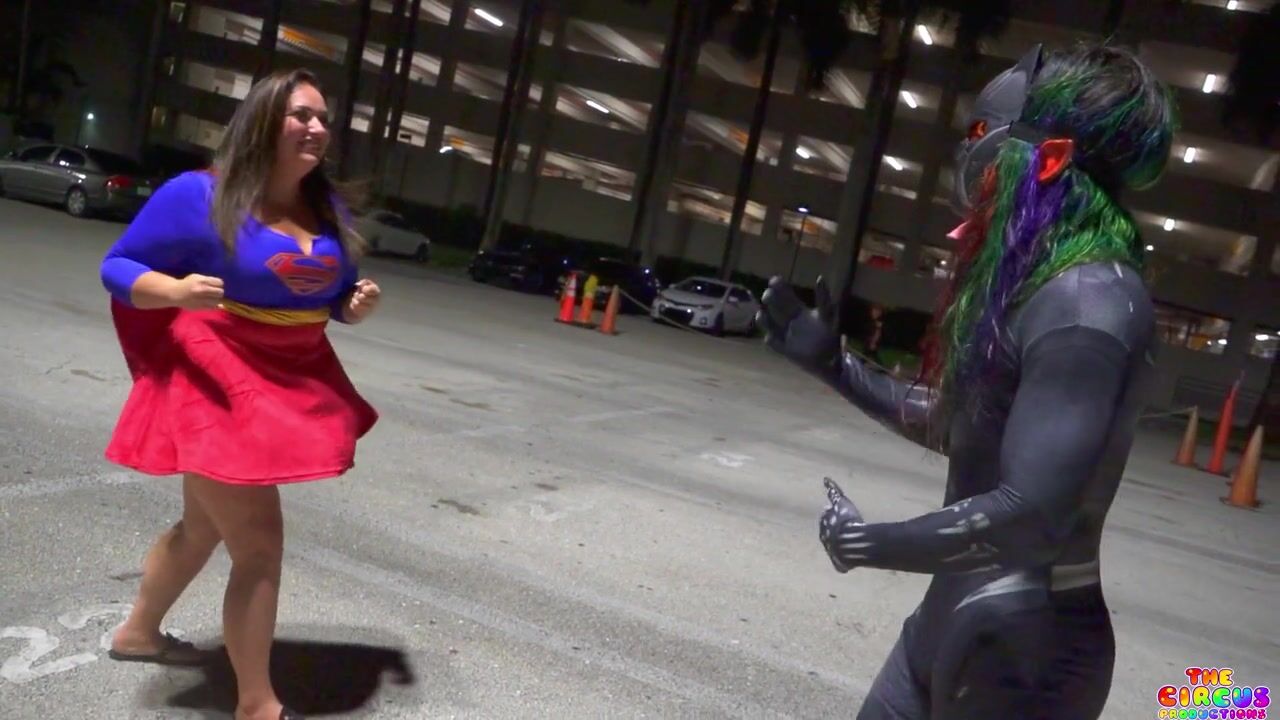 GibbyTheClown Gibby Panther and Supergirl Cosplay in a parking garage with a Public Breast Grope
