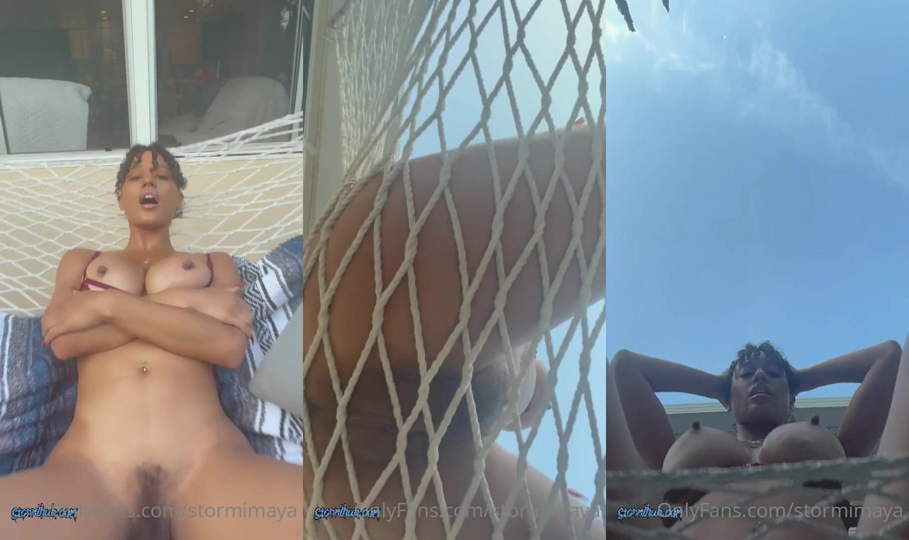 Ebony babe StormiMaya gets playful in the hammock baring her big tits and pussy in a teasing outdoor video from OnlyFans.