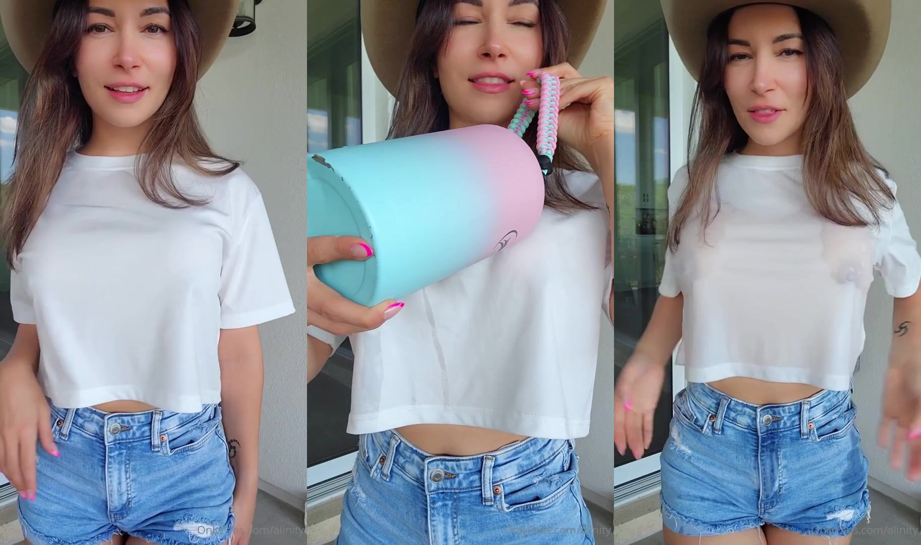 Alinity Teases in Wet T-Shirt Riding Cowgirl in Leaked Video