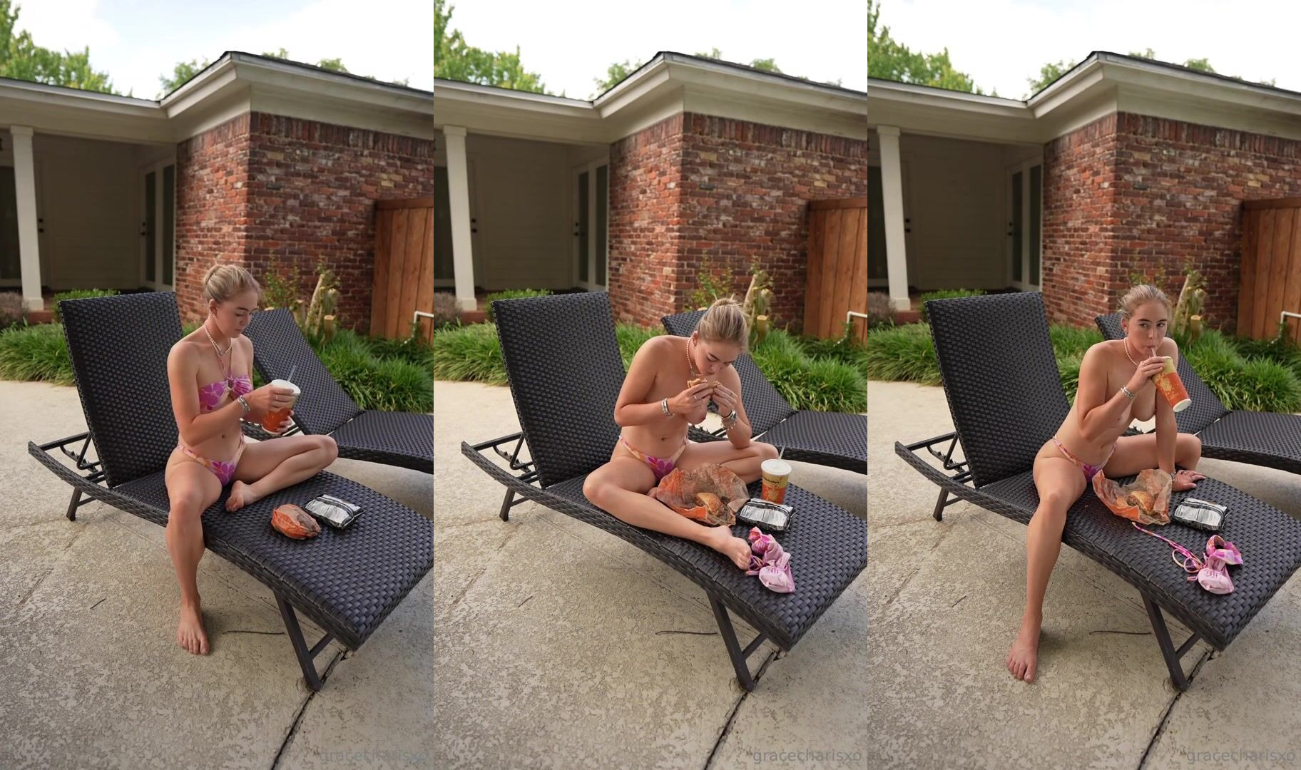 Grace Charis Teases Her Tits Outside While Eating In Leaked Video