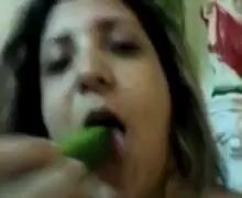 Chudasi Aunty first sucked the cucumber to her heart’s content and then inserted it in her pussy Indian Video Tape