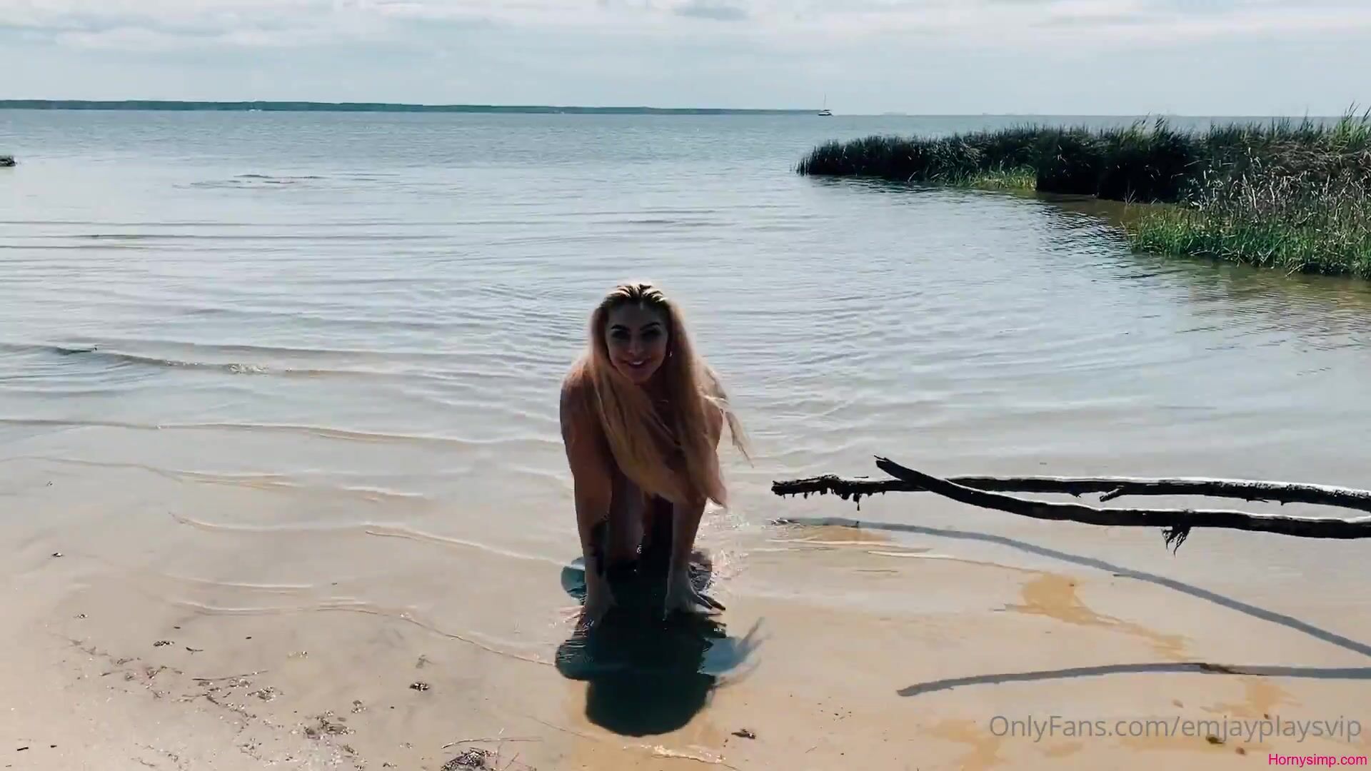 Emily Rinaudo gets down and dirty lakeside, teasing cock in public for an exhilarating blowjob video adventure.