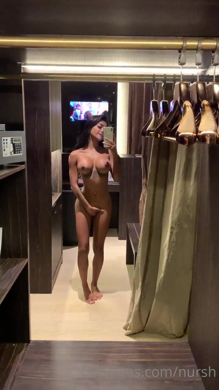 Nursh Love to Showing Off Her Naked Body While Rubbing Pussy in Mirror Onlyfans Video
